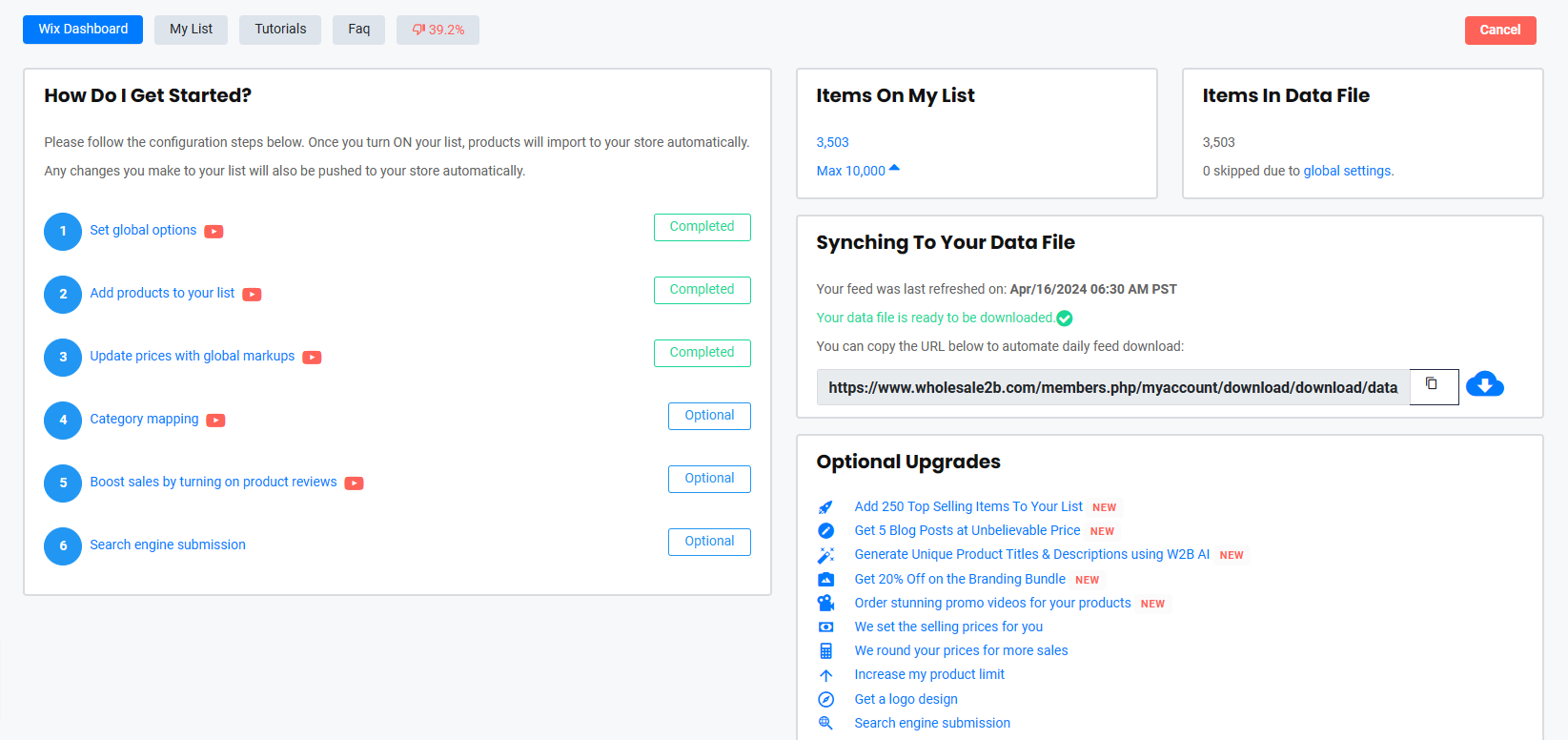 Seamlessly connect your Wix store with Wholesale2B's dropshipping platform. This integration allows you to access Wholesale2B's extensive product catalog, manage your inventory, and streamline the order fulfillment process.